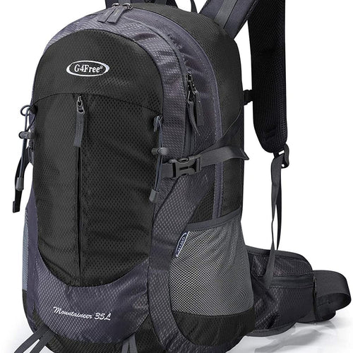 35L Hiking Backpack Water Resistant Outdoor Sports Travel Daypack Lightweight with Rain Cover for Women Men (Black)