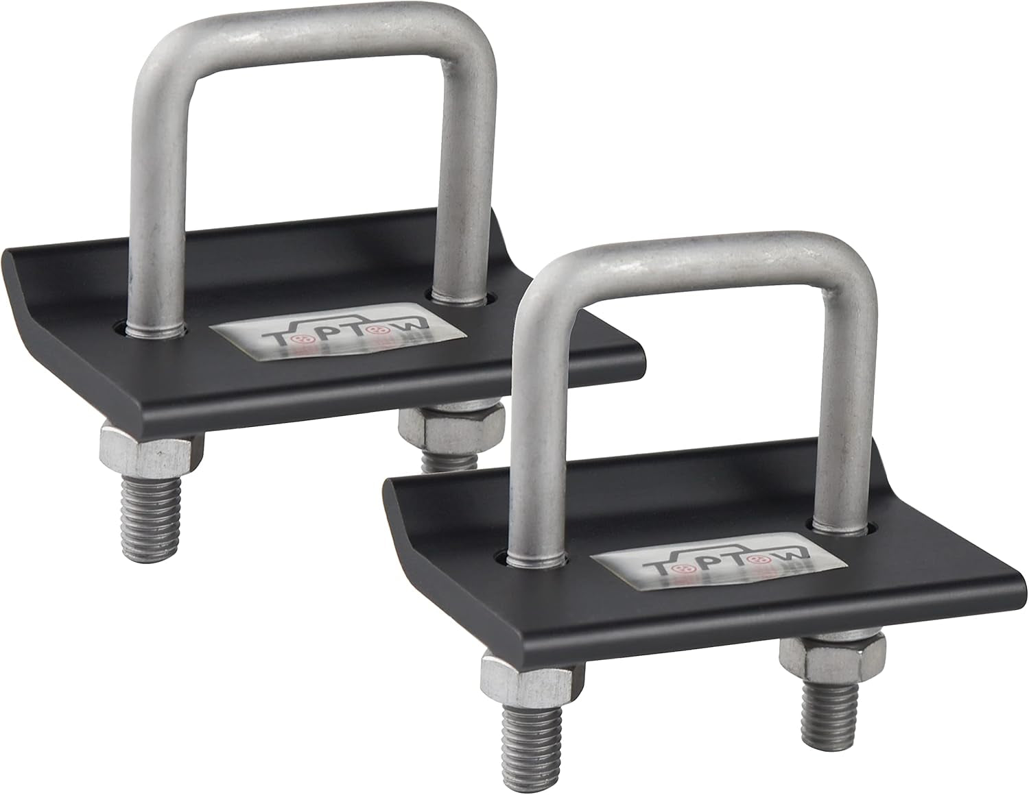 TOPTOW is a well experienced manufacturer of towing accessories. We only craft products with the best quality. Toptow's Anti-Rattling Hitch Tightener is designed to eliminate hitch wobbling or rattling noise, and reduce the hitch movement for bike racks, hitch racks, cargo carriers, etc. This Anit-Rattling plate has applied black anodizing with better corrosion resistance, higher durability. U bolt has Zinc Nickle plating for long lasting, and reduce wear and tear. This package comes with:one aluminum plate, one U bolt, two plaint washers, two spring washers. It can be used on 1.25 inches x 1.25 inches or 2 inches x 2 inches receiving hitch and also fast and easy to install.