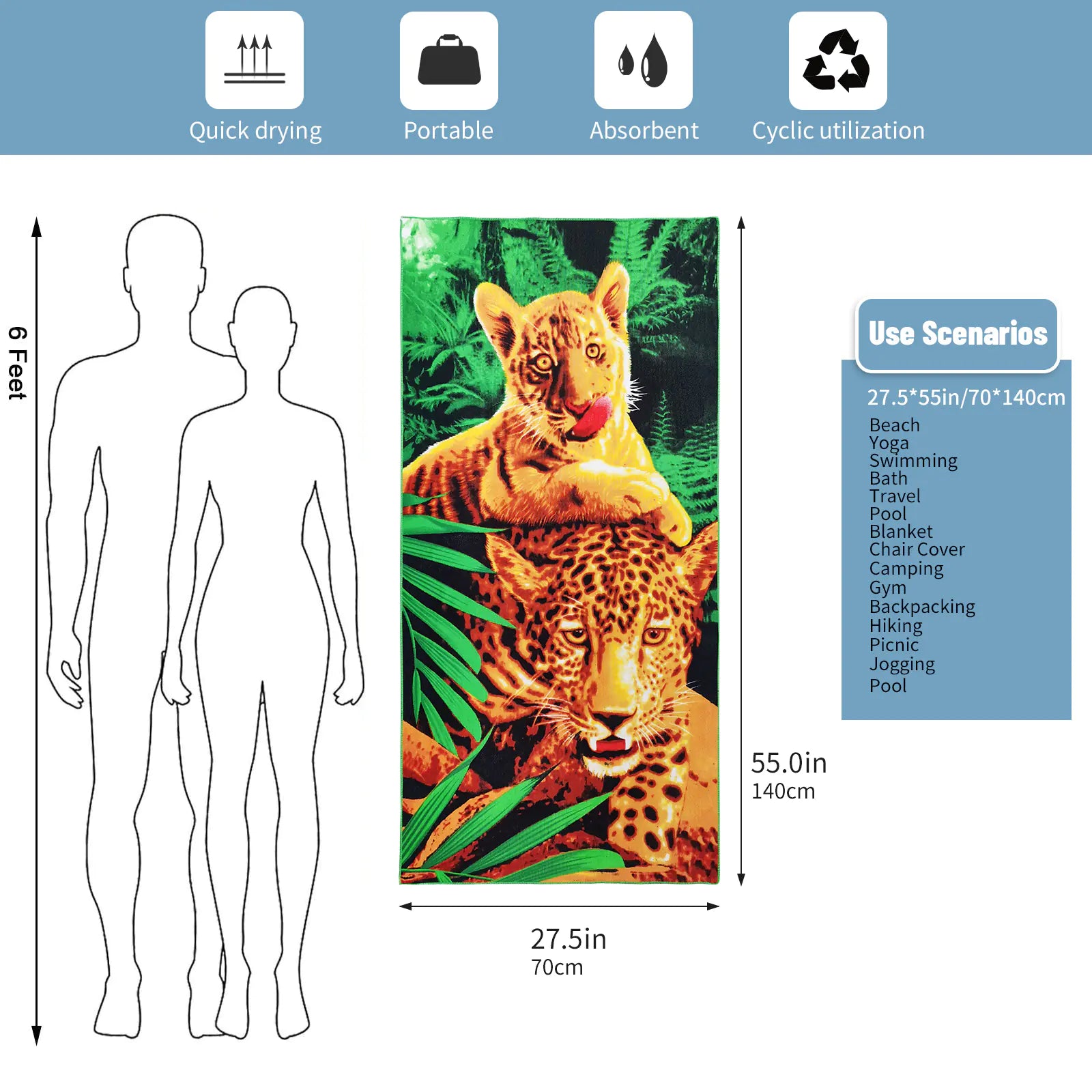 Green Jungle Tiger and Leopard Quick-Drying Beach Towel