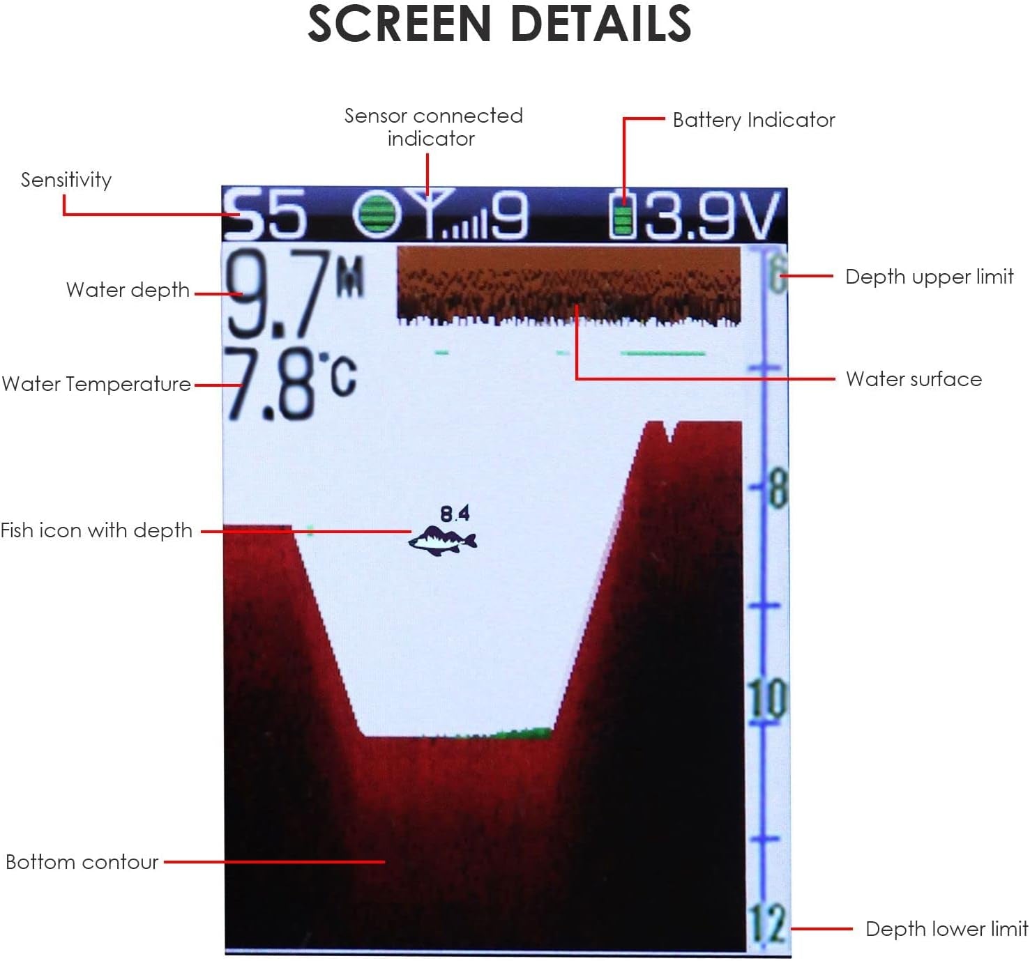 - 🐟【Ideal gift for fishing】The portable fish finders is user-friendly design, it's a necessary fish finder for fishing, wide applications for kayak fishing, ice fishing, river& lake fishing, sea fishing